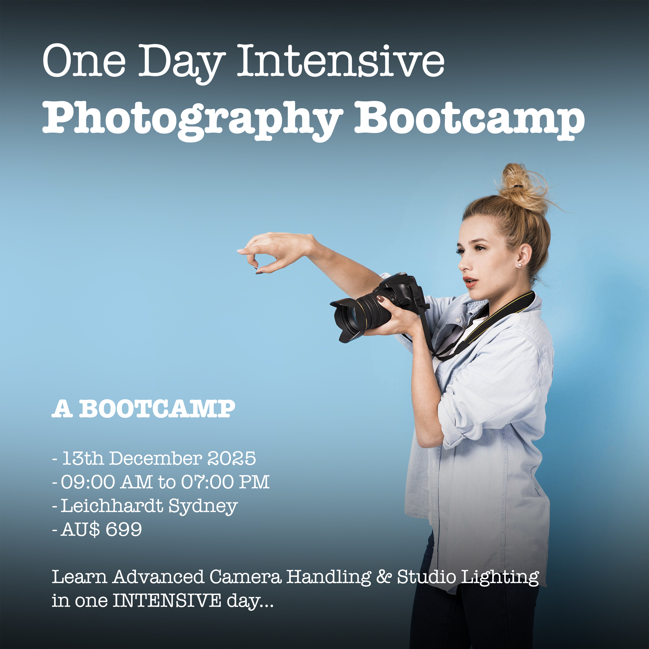 Learn Advanced Camera Handling & Studio Lighting in one day..